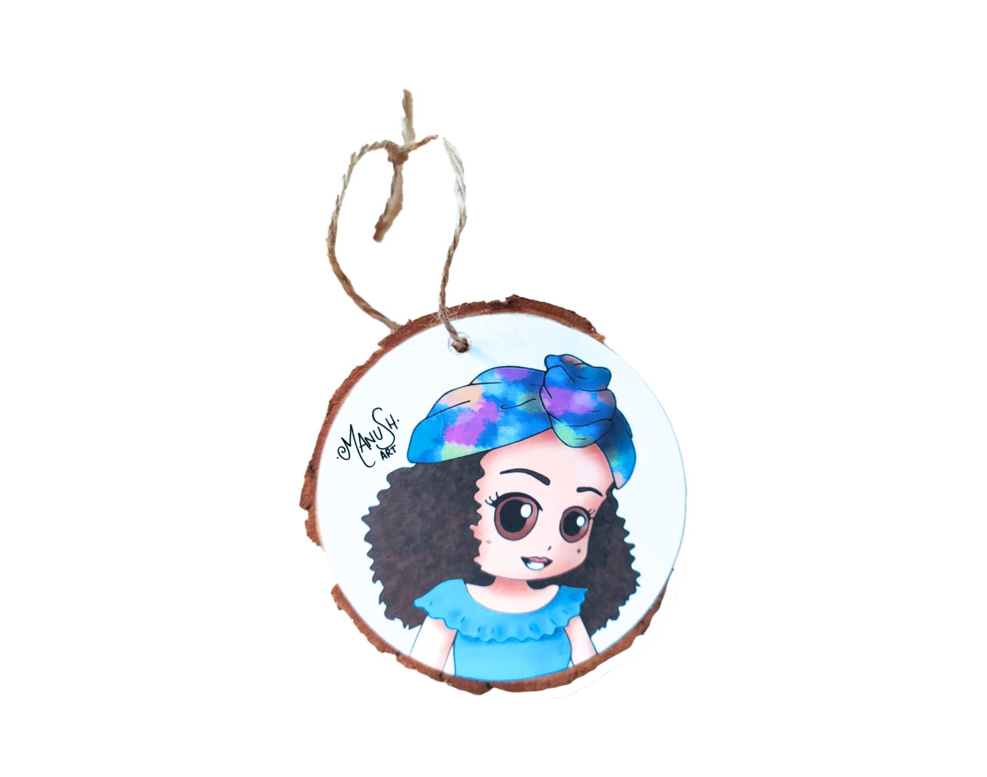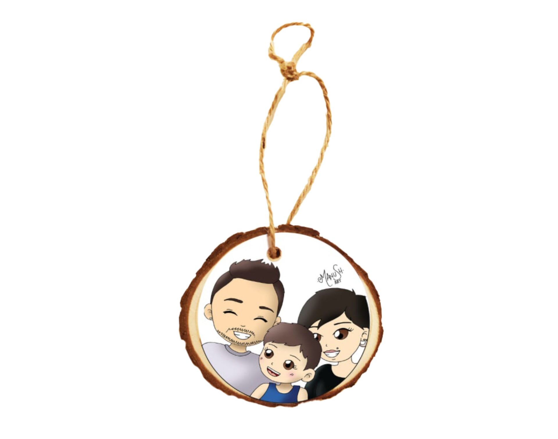 Caricatura cartoon realizzata in digitale e riportata su un cerchietto di legno.