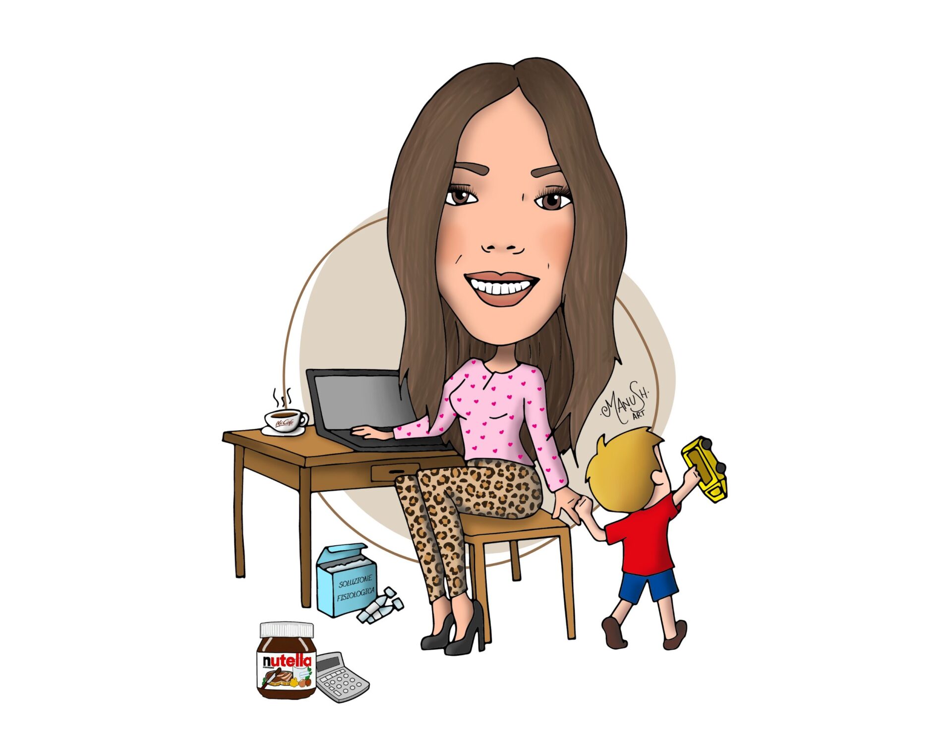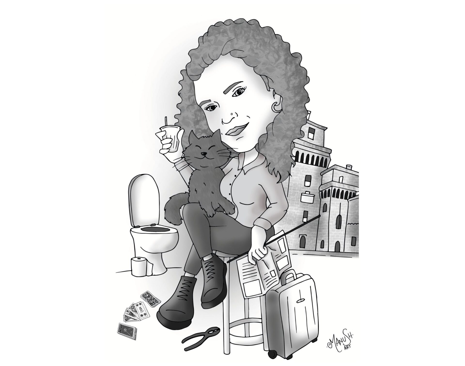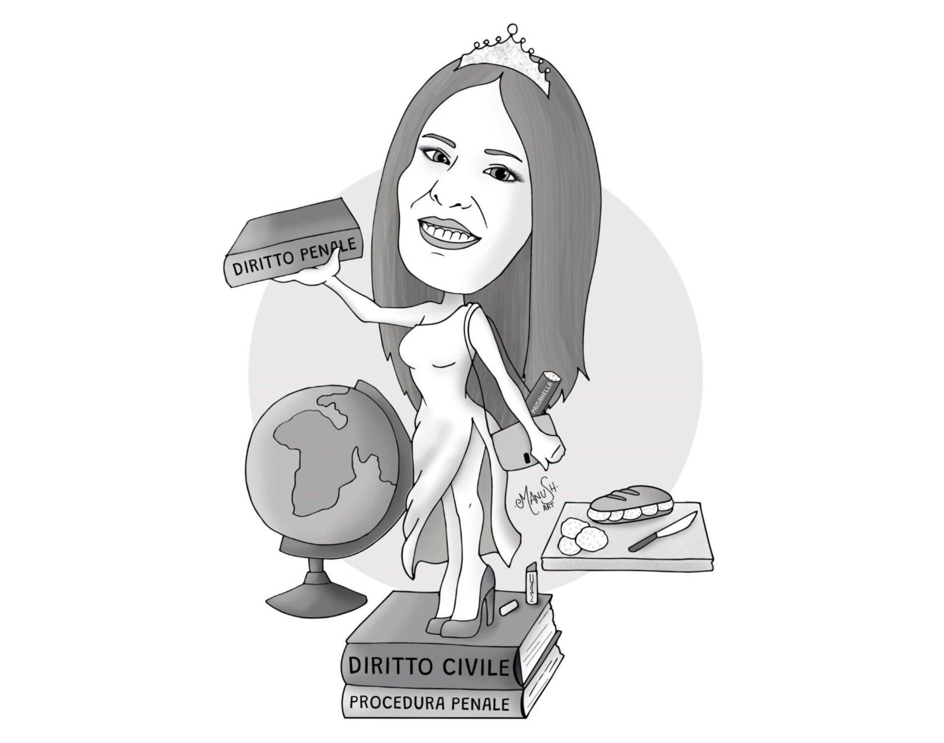 Caricatura in stile classico, realizzata in digitale, spesso utilizzata come caricatura di laurea o matrimonio.